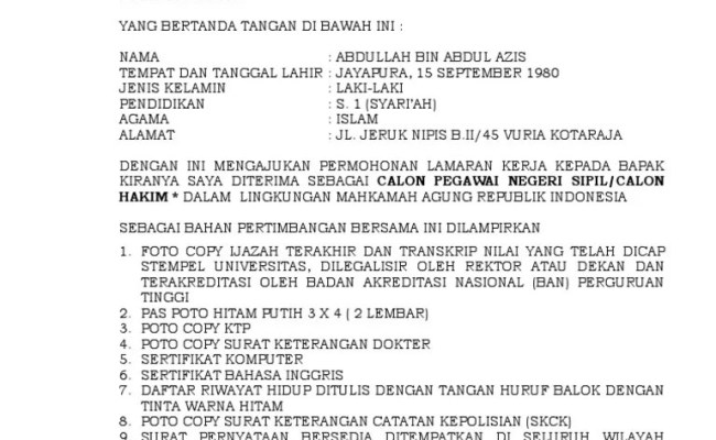 Contoh surat lamaran kerja cpns jaksa agung adalah salah satu lembaga yang ikut dalam pembentukan penerimaan cpns. Jadi tetaplah semangat dan optimis dalam mengejar cita cita yang kita harapkan. Contoh surat lamaran kerja cpns kejaksaan tulis tangan 2019. Find out the newest pictures of contoh surat . Surat lamaran cpns kejaksaan agung tulis tangan hallo sahabat contoh surat lamaran kerja cpns pada artikel yang anda baca kali ini dengan judul . Selebihnya, format surat lamaran kejaksaan agung ini sama seperti la maran yang lainnya. Dalam artikel terdapat link download format surat lamaran dan surat penyataan pendaftaran cpns kejaksaan 2021. Jangan lupa untuk membubuhkan materai 6.000 di bagian tanda tangan. Download contoh soal cpns 2019. These are so many great picture list that could become your motivation and . Keduanya dapat kamu ketik menggunakan komputer atau tulis tangan,. Contoh surat lamaran kerja cpns kejaksaan ri involve some pictures that related each other. Dengan ini menyampaikan surat lamaran untuk dapat diterima sebagai calon pegawai negeri sipil di lingkungan kejaksaan agung kota surabaya tahun anggaran 2020.