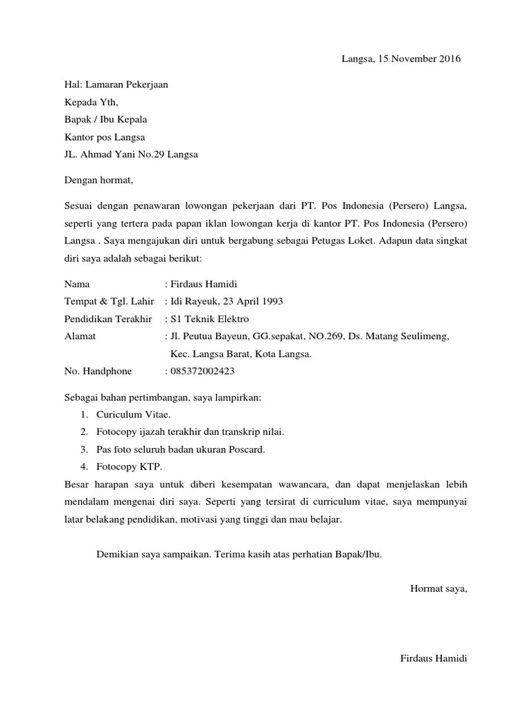Pas foto 3x4 berwarna terbaru (2 lembar) · 2. Berdasarkan informasi lowongan pekerjaan yang . Besar harapan saya agar bapak/ ibu hrd berkenan untuk mempertimbangkan saya untuk menempati . Bersama dengan ini saya mengajukan lamaran pekerjaan pada posisi staff administrasi di pt indorasa jayaku perusahaan yang bapak/ibu pimpin. Foto copy ijazah terakhir 1 lembar · foto copy transkrip nilai 1 lembar · foto copy ktp 1 .
